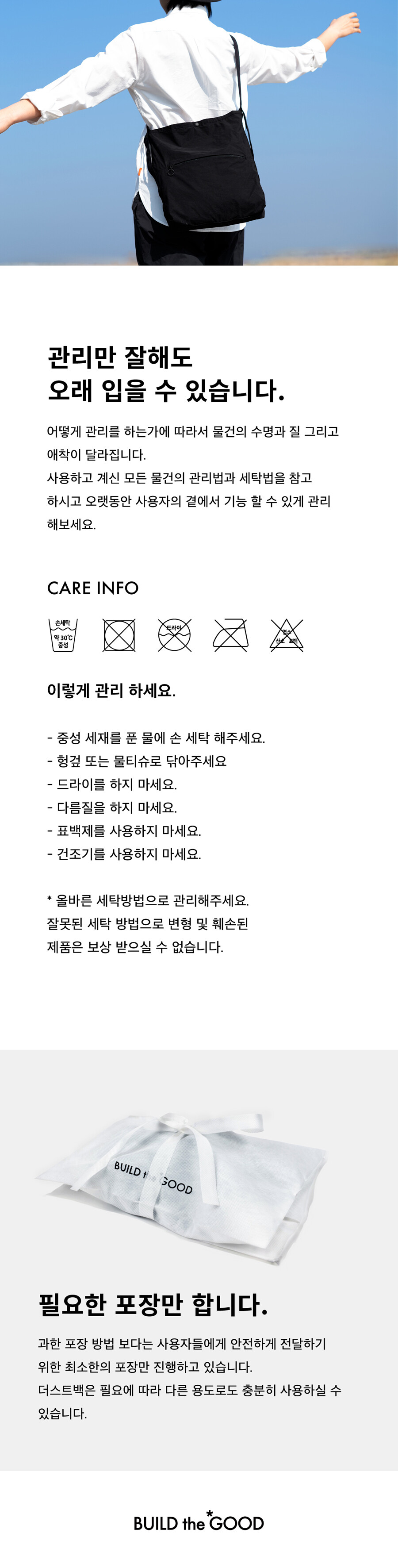 제품과 함께 BUILD the GOOD 품질 보증서를 함께 보내드립니다.