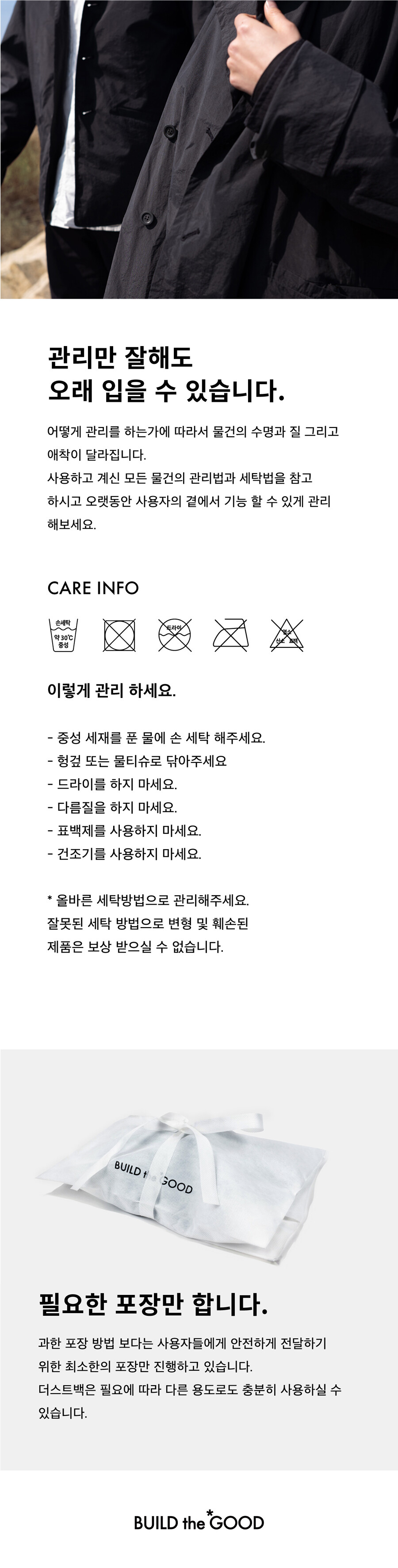 제품과 함께 BUILD the GOOD 품질 보증서를 함께 보내드립니다.
